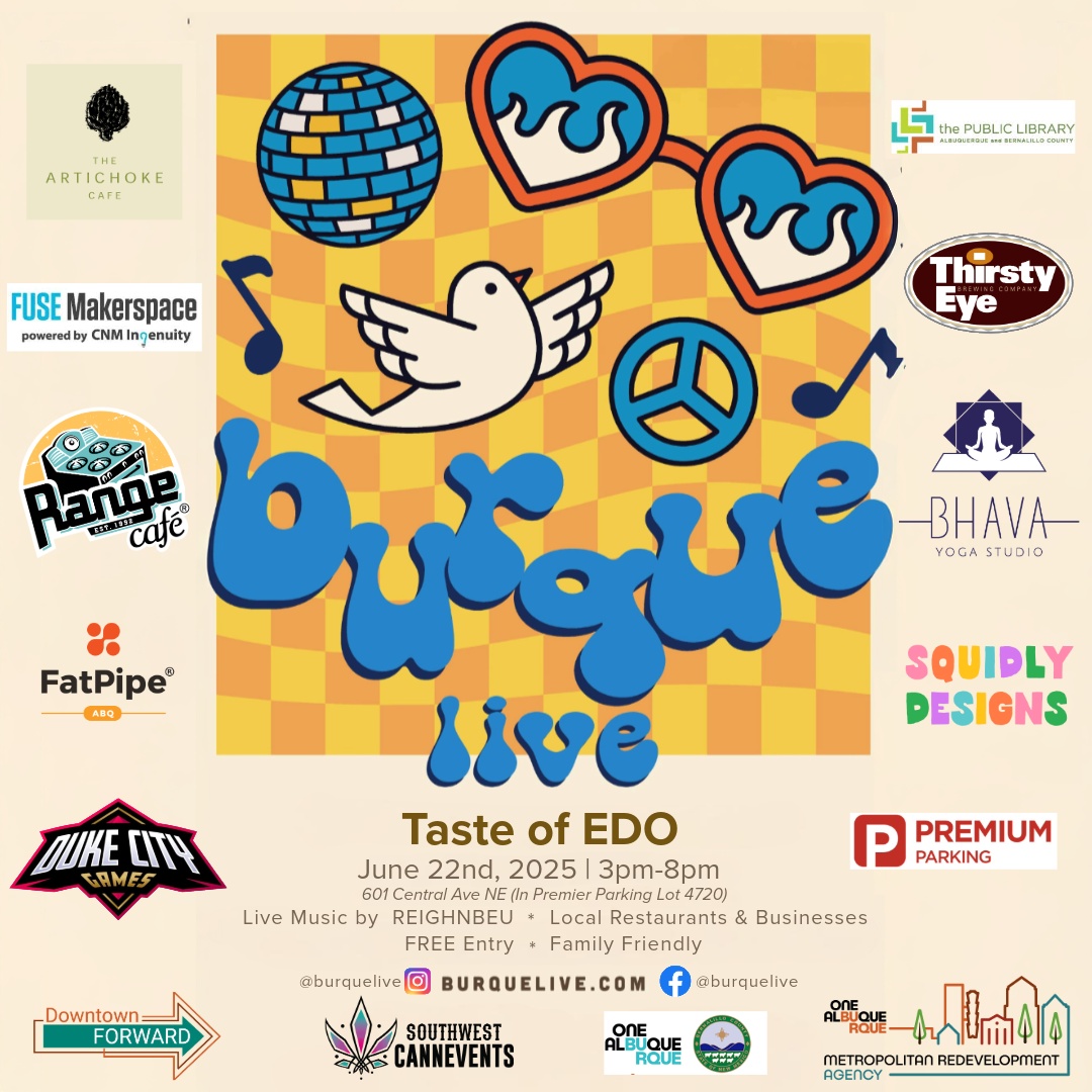 In line with MRA's commitment to promoting community engagement and empowering residents, Burque Live! plans to curate a block party to enhance the quality of life in the EDo Neighborhood. This Block Party will feature local businesses, restaurants, galleries, etc. throughout the EDo Neighborhood in promoting the true connected nature of this neighborhood, the walkability of this neighborhood, and the exemplary variety of businesses spread throughout this neighborhood.