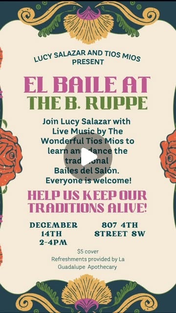@tios.mios on Instagram: "Playing for a Baileeeeee Please join us for this beautiful event in Albuquerque. December 14th from 2-4pm. Lucy and the dancers will be teaching the bailes and Jesusa is making mocktails 🥂Thank you @thebruppedrugstore for putting this on. And thanks to another new TÃo, Noah Martinez for playing this one !!"