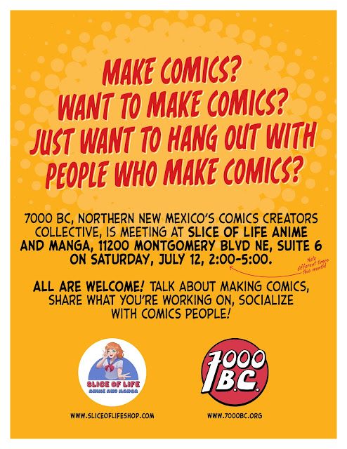 Comic Creators Meetup Saturday, Aug 09, 01:00 PM-04:00 PM Saturday 9 August 16:00 Slice of Life Anime and Manga 11200 Montgomery Blvd NE 7000 BCartcomic bookscomicsdrawingfree